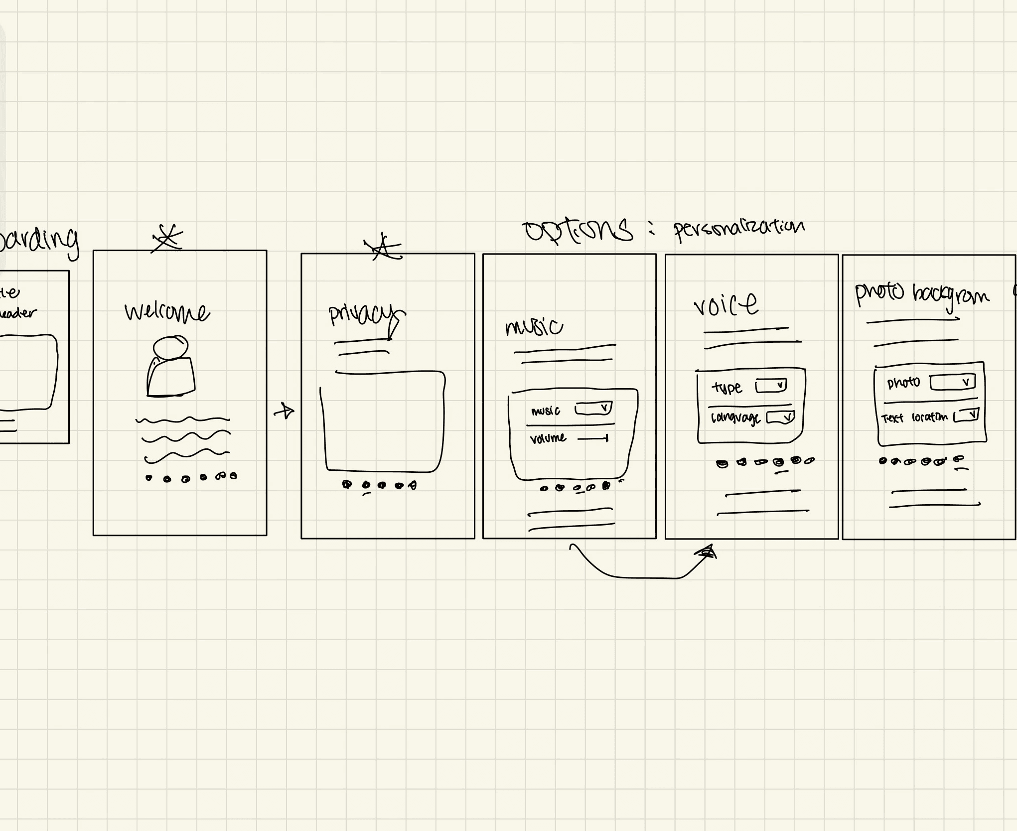 Here are my early sketches exploring different navigation patterns and content. With a tight timeline, I focused on sketching quickly to align ideas before moving on to prototyping.