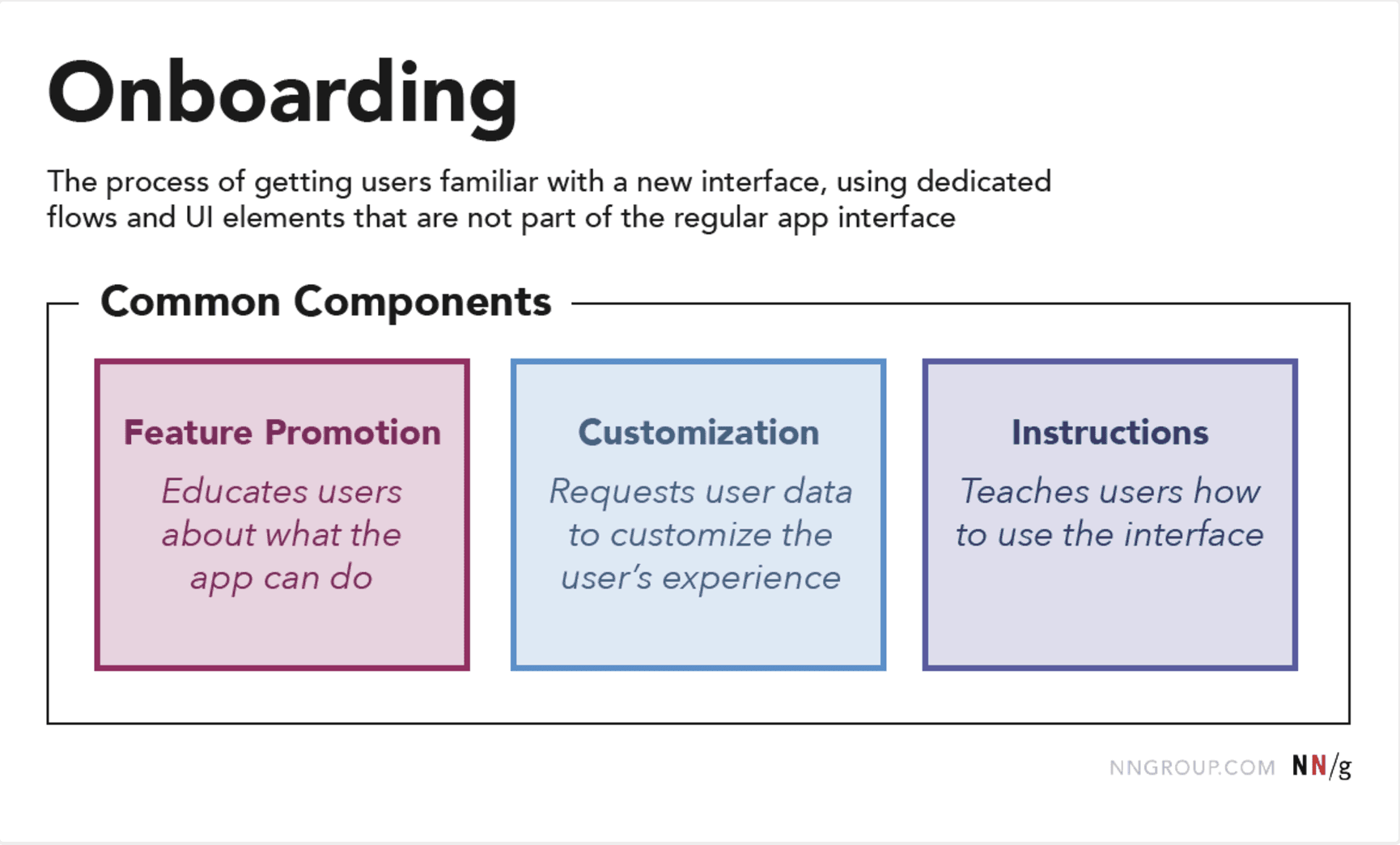This is from an NN Group article we referenced while researching common onboarding design patterns in UX.